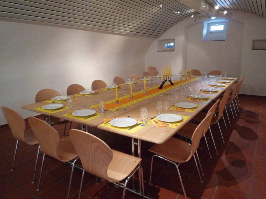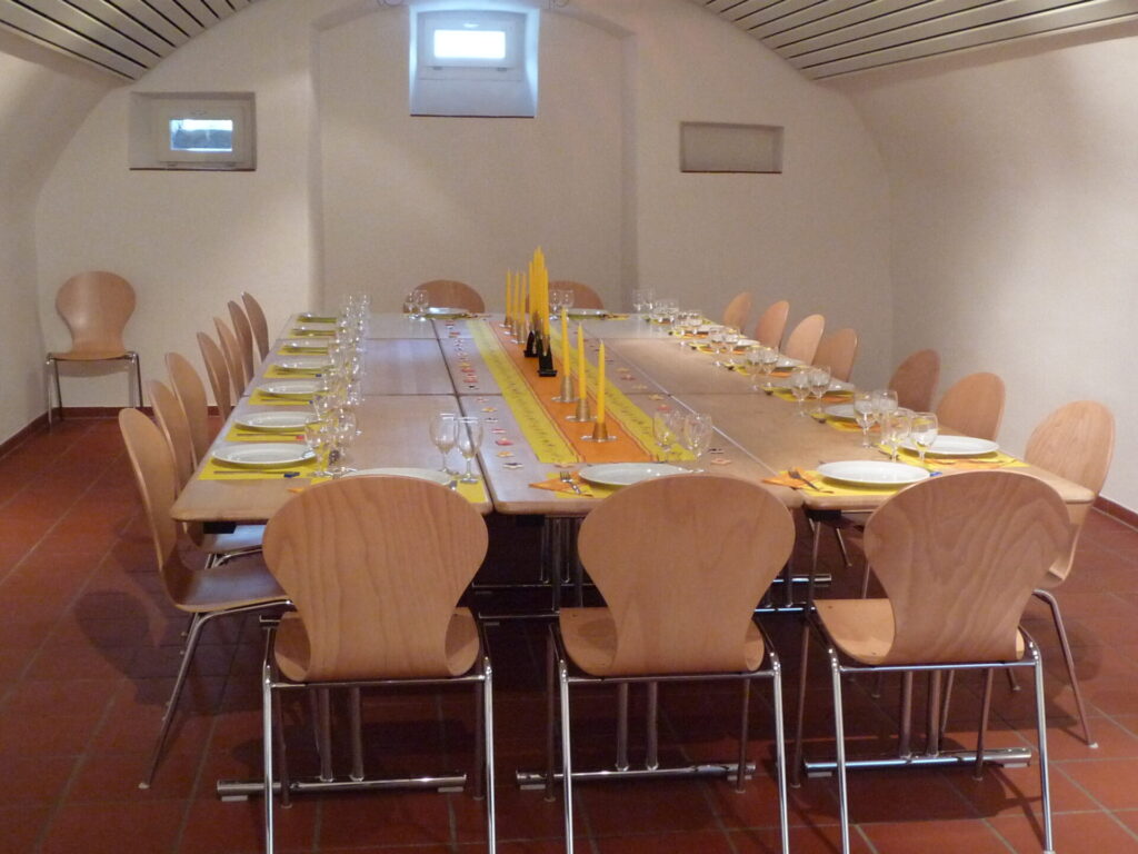 Der Kronenkeller unterhalb unserer Gemeindeverwaltung ist ein renovierter Gewölbekeller mit einer nutzbaren Fläche von ca. 30m² und bietet ca. 50 Personen Platz. Die integrierte Kleinküche mit Geschirrspühler, mit Kühlschrank und Geschirr, sind den Räumlichkeiten angepasst. Eine separate Garderobe und WC’s sind ebenfalls vorhanden. Die sehr ausgeklügelte Beleuchtung verschafft diesem Keller ein ganz besonderes Ambiente. Die Schallschutzbewandung dämmt auch etwas lautere Geräusche, sofern die Türe geschlossen bleibt. Schauen Sie die Fotos an und setzen sich mit dem zuständigen Gemeinderat in Verbinung. Verbringen Sie einen unvergesslichen Tag in unserem modernen Gewölbekeller.